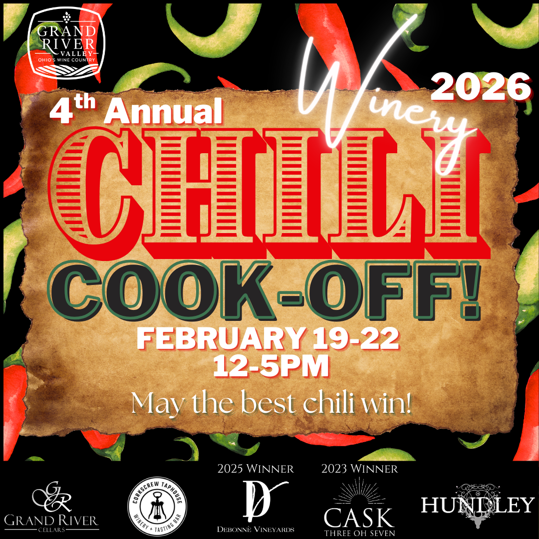The 4th Annual Winery Chili Cook-Off runs February 19–23 and brings the heat across all participating stops. Enjoy $3 chili samples at each winery, then cast your vote for Best Chili at your final destination. Come hungry and let your taste buds decide the champion.