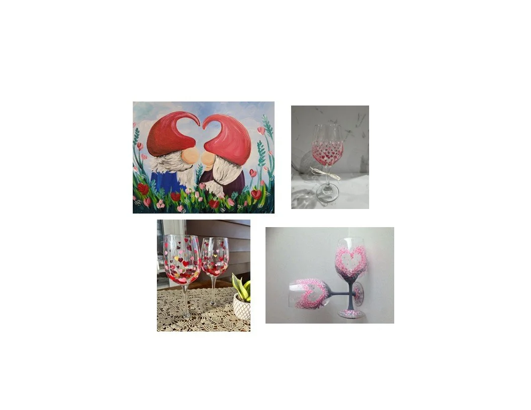Choice of Gnome painting on 2 canvases OR a total of 4 glasses (2/person)