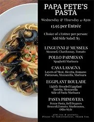 Enjoy Pasta Specials for only $13.95 per person. Every Wednesday and Thursday in Novemeber and December.